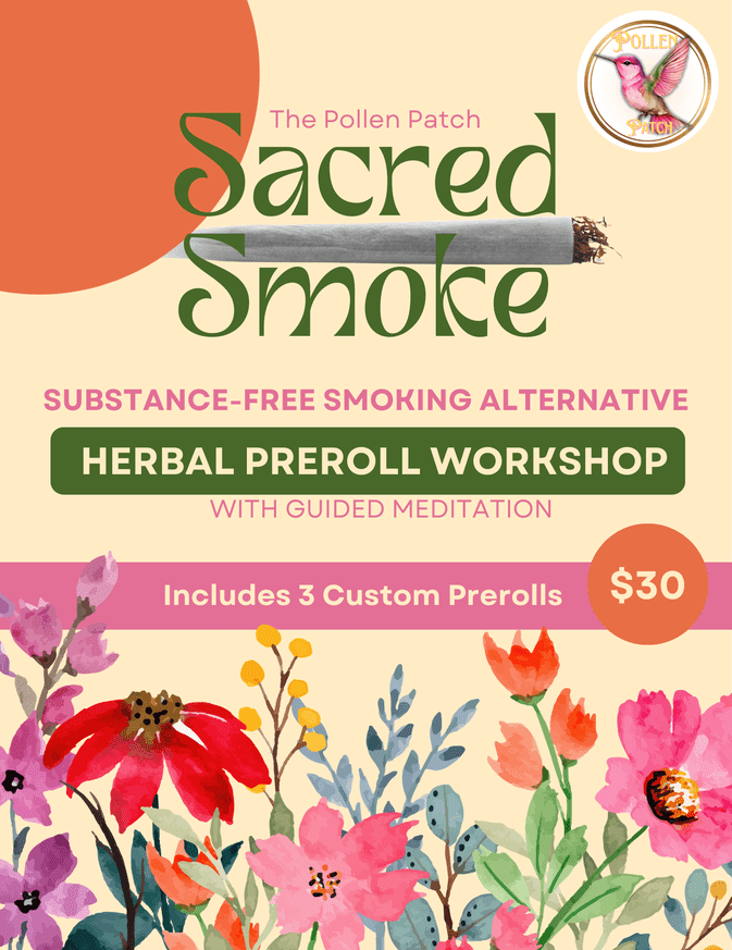 Learn about herbs like mullein, damiana, lavender, peppermint, chamomile, rose petals, and how they support us as allies in ritual, reflection, and intention (THC, CBD or Tobacco is NOT included in this workshop, however, you are welcome to bring your own herbs.)